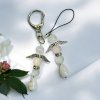 Osobní talisman & šperk Anděl Sňatku jsem vyrobila z přírodních minerálů jako je howlit, růženín, křišťál a z obecného kovu. Velikost samotného andílka je 4,5 cm a je možné ho využít několika způsoby - na klíče, přívěsek na kabelku/batoh, do auta, jako záložku, přívěsek na krk nebo ho zavěsit kdekoliv do prostoru.
