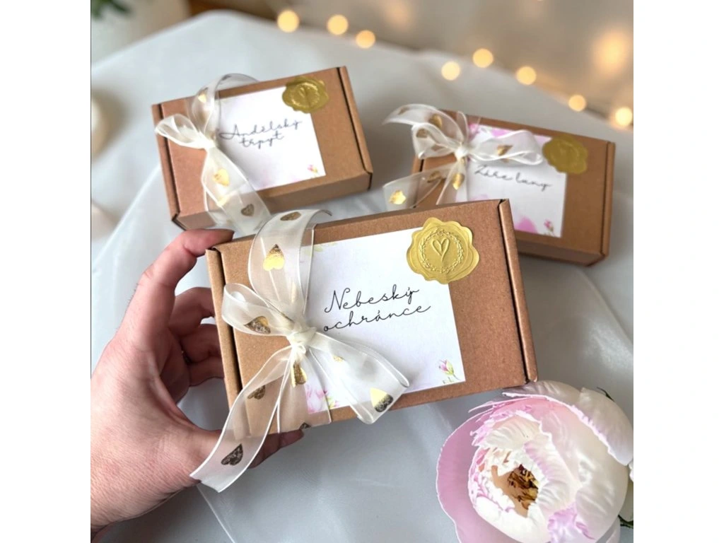 Personalizovaná nálepka (kartička) na krabičce podtrhne výjimečnost celého dárku.