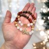 Náramek navlékám na kvalitní pruženku, která drží tvar a zároveň dovoluje pohodlné převlečení náramku. V závislosti na vybrané velikosti může náramek obsahovat více nebo méně korálků, než na zobrazené fotografii. Velikost náramku určíte tak, že si změříte zápěstí (krejčovským metrem nebo pomocí provázku, který následně přiložíte k pravítku) a k číslu přičtete 1-1,5 cm. Nejběžnější velikost zápěstí u žen je cca 16,5 cm + 1 – 1,5 cm = cca 18 cm – volila bych velikost M. Náramek můžu vyrobit i menší, tuto možnost často využívají maminky, které chtějí náramek koupit pro dítě nebo chtějí mít stejný náramek se svoji dcerkou.