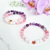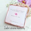 Náramek jsem vyrobila z minerálů velikosti 8 mm (jadeit, růženín, ametyst, křišťál) a doplňků v rose gold provedení. Součástí náramku je kartička “Pro paní učitelku” – tento text je možné změnit (pro paní asistentku, vychovatelku atd..) nebo doplnit jméno paní učitelky – více informací níže. Tento náramek je velice ženský a romantický, zároveň má ametyst klidnou a harmonizující energii, která pomáhá při uklidňování mysli a podporuje duchovní růst. Náramek s kartičkou vkládám do celofánku a v organzového pytlíčku, je možné přikoupit krabičku.