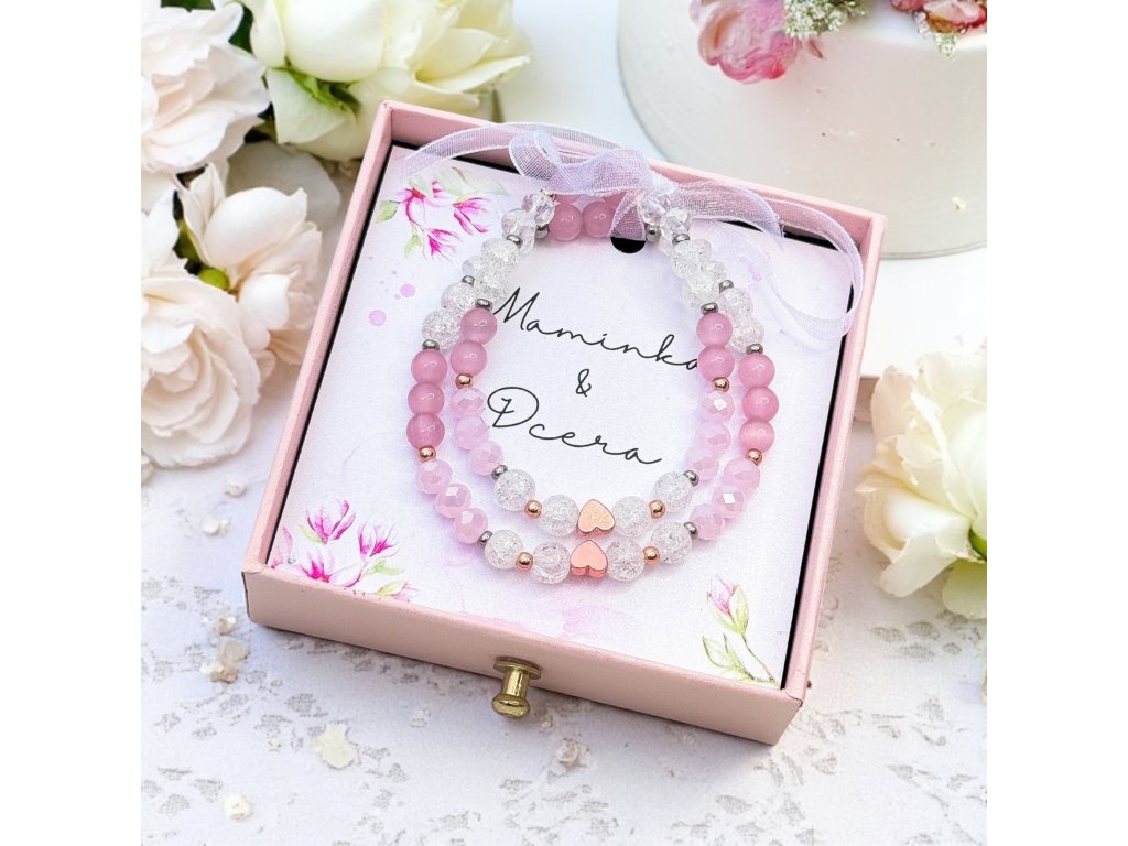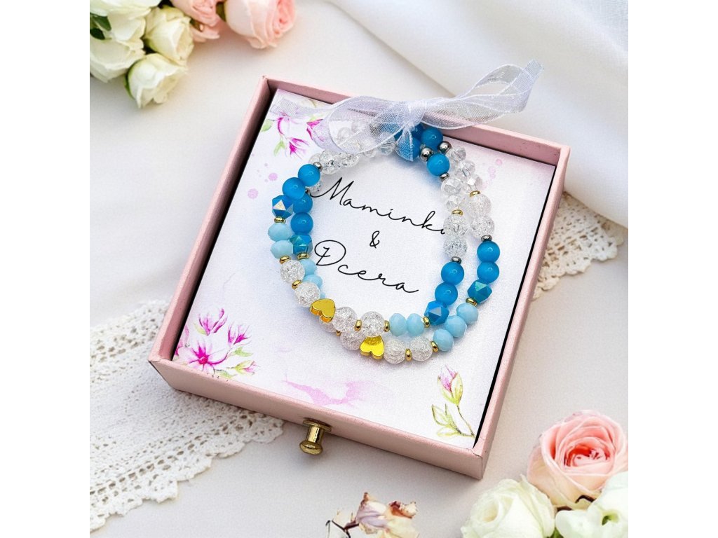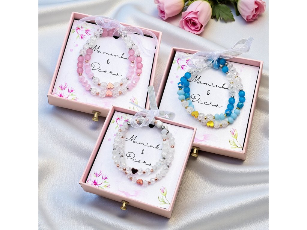 Dva náramky z minerálů – jeden pro maminku, druhý pro dceru. Symbol lásky, blízkosti a jedinečného pouta, které přetrvá i na dálku.