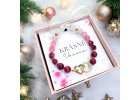 Tento přívěšek jsem vyrobila z ametystu, růženínu a křišťálu, karabiny, kroužku na klíče a ocelového stromu života. Jeho součástí je kartička “Pro paní učitelku“, text je možné doplnit o jméno paní učitelky. Je také možné změnit, pro koho je dárek určený – pro paní vychovatelku, asistentku, kuchařku, ředitelku atd. Na zadní straně kartičky je text “Malí človíčci potřebují velké srdce – Vaše. Děkuji za vše“. Tento text je také možné doplnit o jméno žáčka, popřípadě změnit úplně. Tyto změny stačí napsat do poznámky k objednávce. Kartičku s přívěskem vkládám do celofánku a organzového pytlíčku nebo je možné přikoupit papírovou krabičku. Barva krabičky se může lišit.