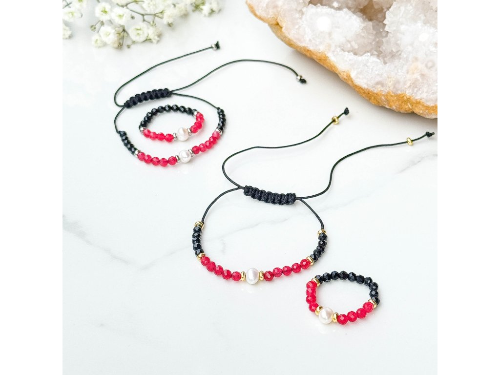 K náramkům jsem vyrobila i prstýnky (150-), s náramkem tvoří skvělé duo. Zatím nejsou na e-shopu, pokud máte zájem, kontaktujte mne prosím.